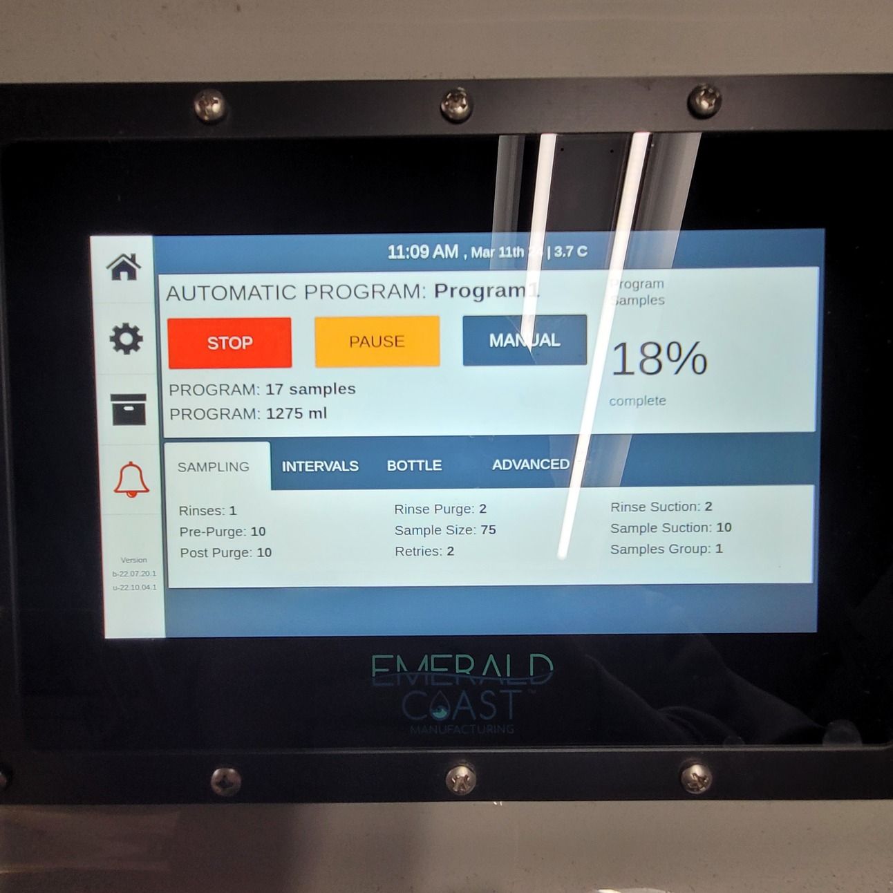 3) Ease of use: The interface is fairly intuitive and you have a lot of options on how you want to set up the sampling. You can change things likes mls per sample, total samples, etc and you can have multiple programs saved on the main screen. This allows you to switch to different sampling schedules if you needed to at the touch of a button.
